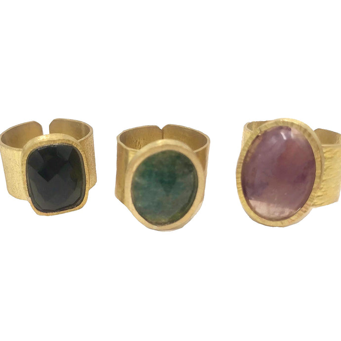 Anillos hechos a mano de diferentes anchuras tanto en plata, como plata bañada en oro como en latón. La mayoría de mis modelos están abiertos por debajo para adaptarse a cualquier tamaño o dedo pero también se pueden hacer cerrados a medida. Realizados con y sin piedras naturales. El color y forma de las piedras, al ser naturales puede variar y se puede personalizar.