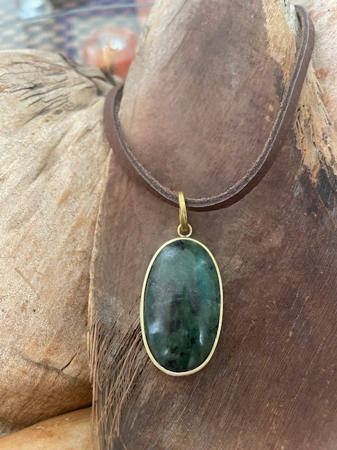Gargantilla hecha a mano de cuero con colgante de piedra natural. El tipo de piedra se puede personalizar, el precio puede variar en función de la piedra escogida.