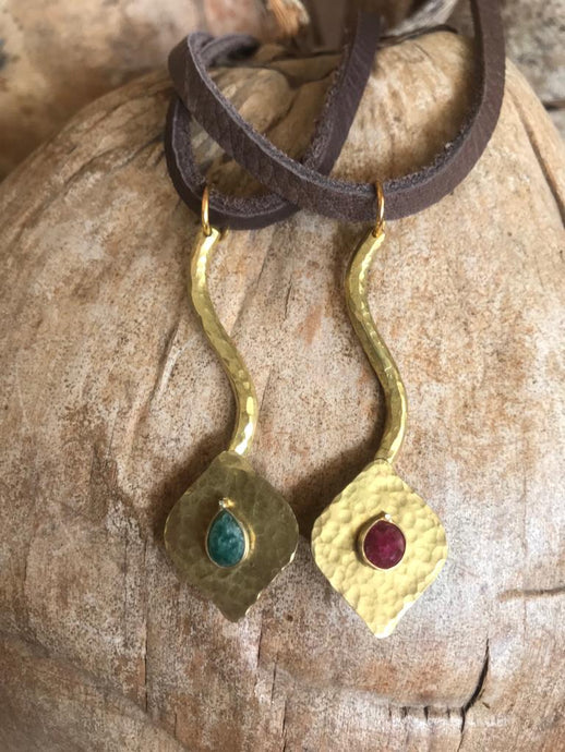 Collares y gargantillas hechas a mano en cuero, cadena o con piedras naturales. Piezas artesanales realizadas en latón, plata y plata bañada en oro (pueden hacerse en oro por encargo). Al ser hechos a mano se puede personalizar el tipo de piedra o acabado que se prefiera. Ajustables por detrás para que se puedan llevar más a cuello o más abajo según preferencias, son muy cómodos de llevar y no pesan nada. Las pieza trabajadas en latón siempre mantendrán su color ya que no llevan ningún baño que se les pueda ir y se limpian igual que la plata por eso es un material perfecto para trabajar en joyería.